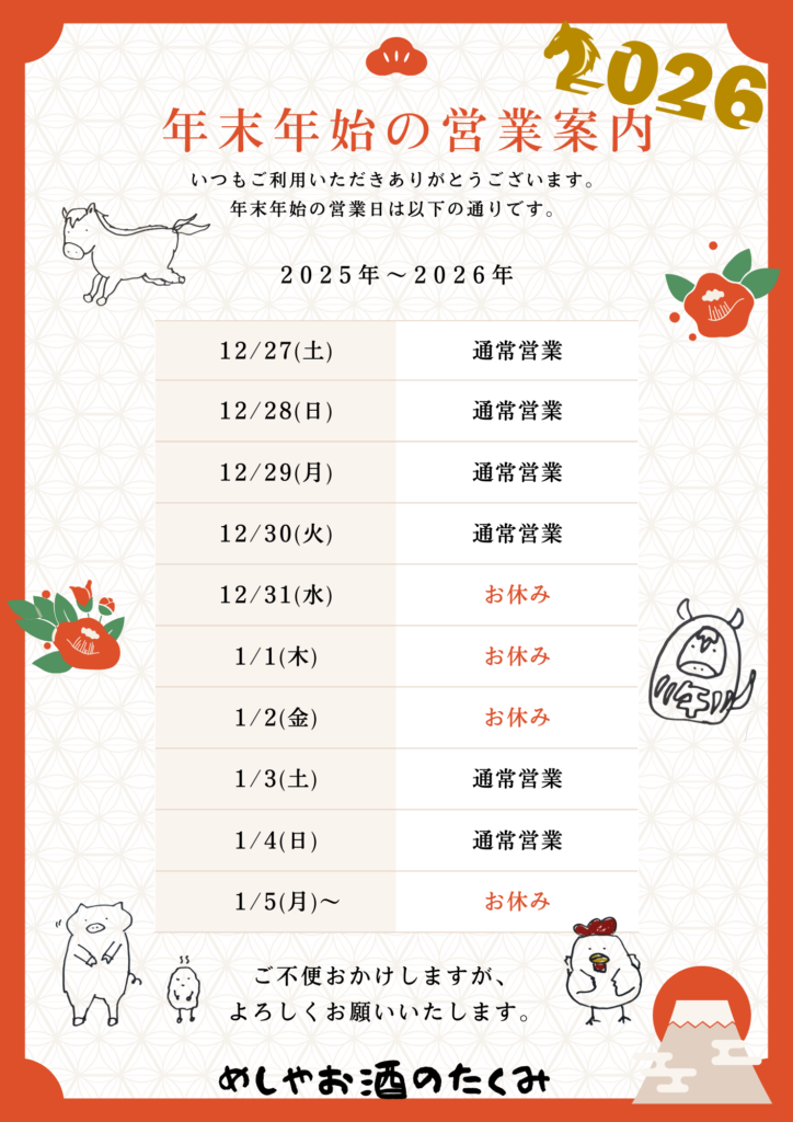 年末年始、是非お待ちしております🍶✨!
