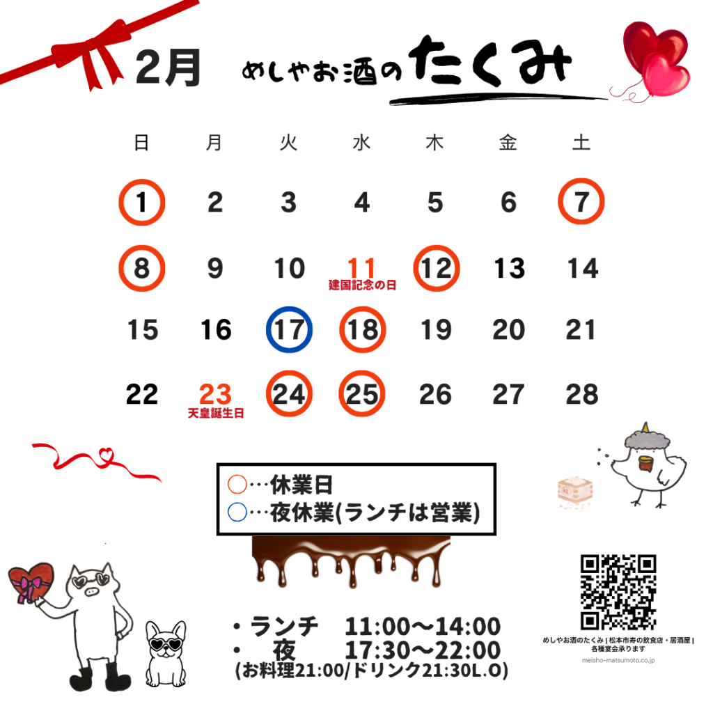 【🍫2月営業日程のお知らせ🍫】